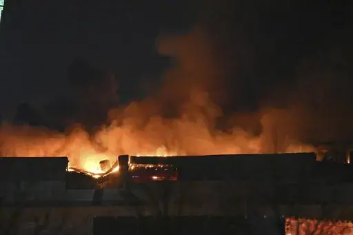 Video showed the building on fire, with a huge cloud of smoke rising through the night sky. The street was lit up by the blinking blue lights of dozens of firetrucks, ambulances and other emergency vehicles, as fire helicopters buzzed overhead to dump water on the blaze that took hours to contain.