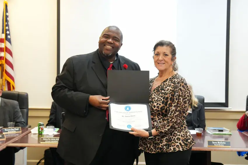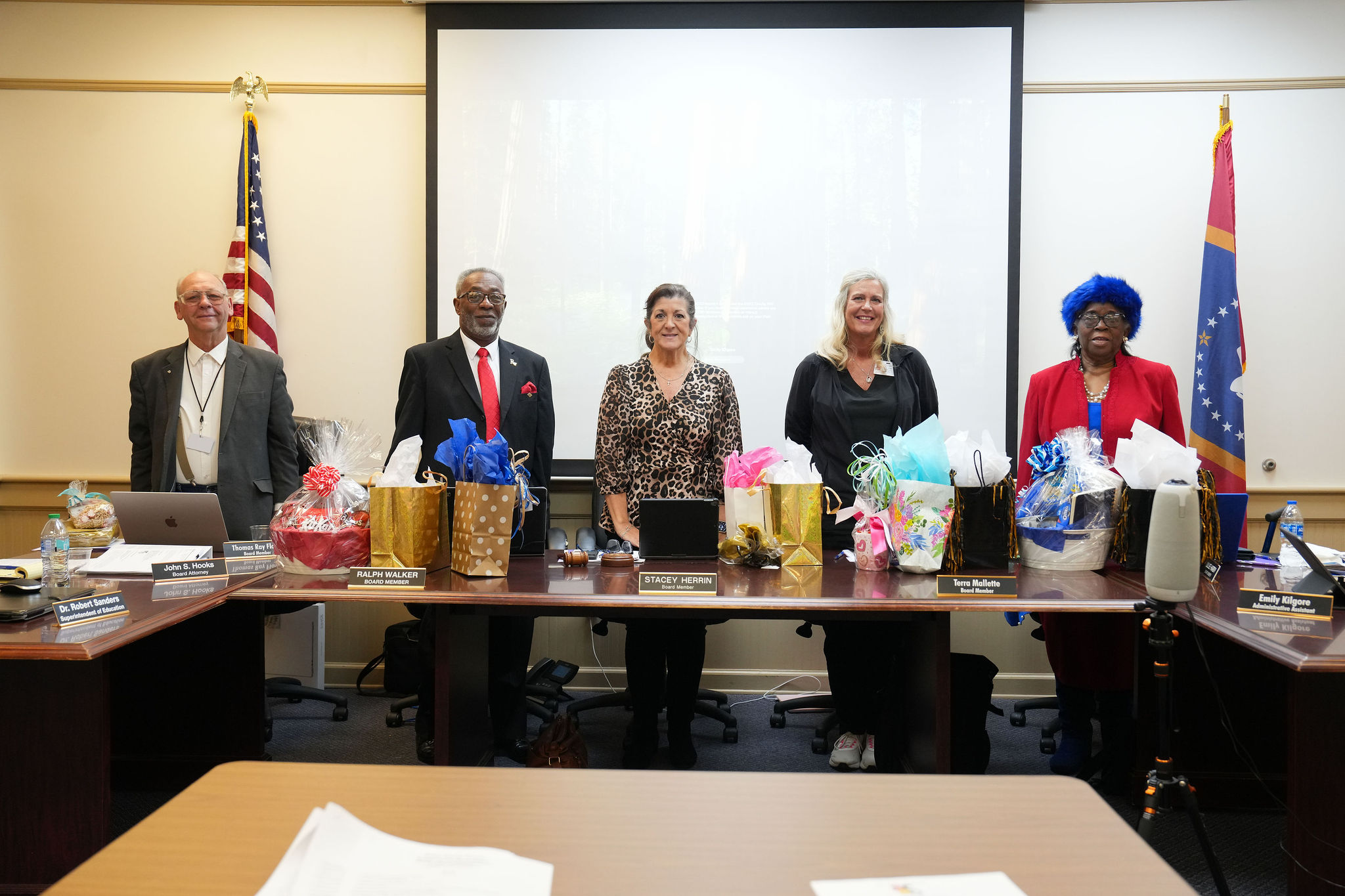 A reception was held prior to the meeting, and principals from across the district presented gifts to honor the board members for their leadership and continued service to students, staff, and families.