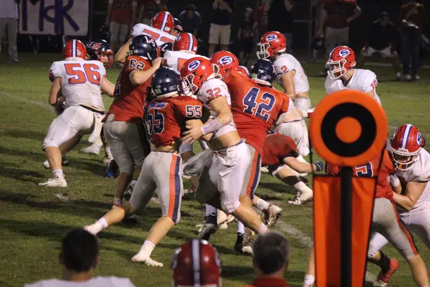 The Simpson Cougars traveled to Lamar School in Meridian on Friday. Simpson received the opening kick and after a three and out were forced to punt. Lamar took over on their 41 yard line and drove the 59 yards capped off by a Joseph Hutchinson 9 yard run, Jake Davidson added PAT and with 6:38 left in the first quarter Lamar led 7-0.