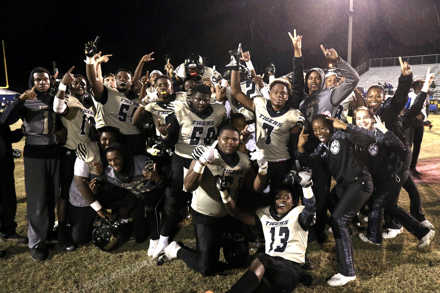 On a crucial fourth down play the defense relied on Tavaris Grace who has come through in big time situation all season. The Panthers dropped back to pass on fourth down and Grace found himself in perfect position and intercepted the ball. Grace returned the interception for his second pick six of the season. The Tigers’ two point conversion was no good, but the 27-20 lead would stand. The Tigers won the game and earned the title of District Champions. Coach Allen and his team celebrated their accomplishment. Allen said, “It’s been 8 or 9 years since we won a district championship. It was hard fought, but we pulled it out. These kids deserve it they’ve worked their tails off.”