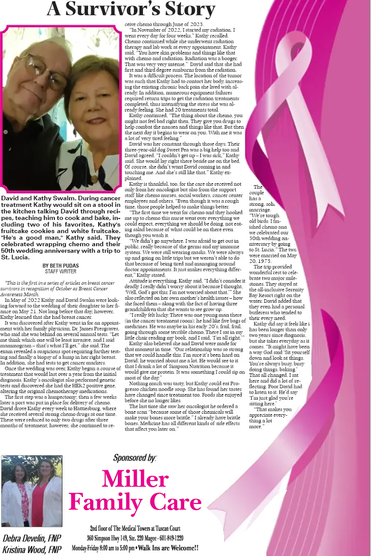 In May of 2022 Kathy and David Swalm were looking forward to the wedding of their daughter to her fiancé on May 21. Not long before that day, however, Kathy learned that she had breast cancer.