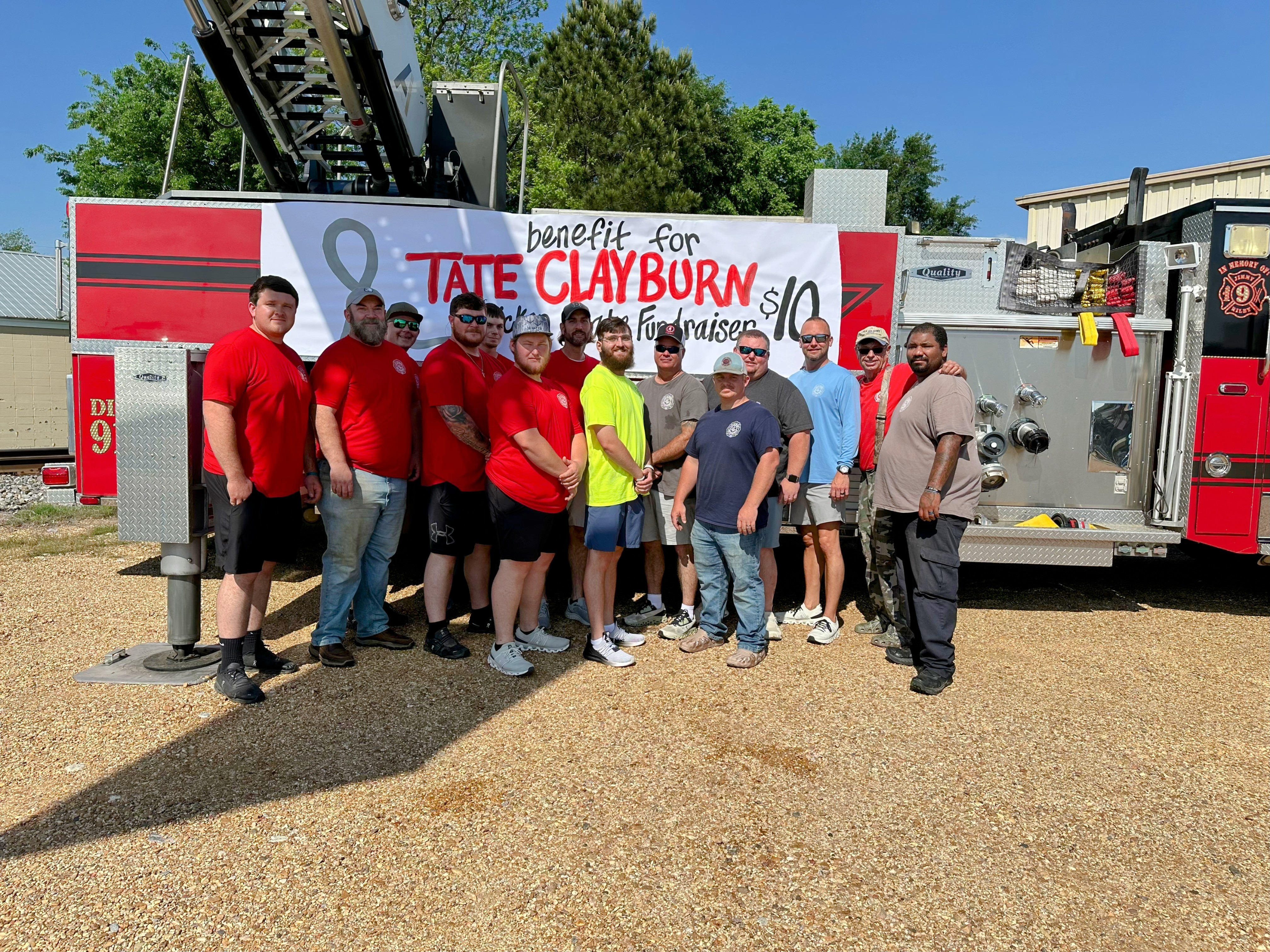 The Magee Volunteer Fire Department once again rallied the community in support of one of its own, Tate Clayburn, who has been battling brain cancers since 2017. Now with new tumors appearing, chemotherapy options are limited, and he is trying to get into a clinical trial. Clayburn is also on holistic treatments. The Magee VFD’s goal for their fundraiser was to sell 1,000 chicken plates at $10 each. Once it was underway, those with and without tickets made their way to the drive-through at the 5 way stop, a steady stream of vehicles from 10 a.m. to nearly 2 p.m. Gathered here are Michael Allan, Mark Parker, Aaron Lindsey, John Hosey, Reuben Koehn, Hunter Steele, Chief David Craft, Tate Clayburn, James Drew Womack, Tony Puckett, Shane Steele, Shane Little, B.J. Smith and John Ready. According to Chief Craft, donations well exceeded expectations. The Fire Department is still accepting donations on Clayburn's behalf.