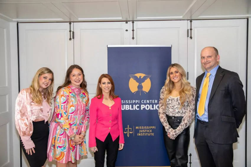 Pictured above from left to right: MCPP Director of Communications and Legislative Affairs Tyler B. Jones, MCPP Director of Operations Anika Page, IWF Policy Analyst Mandy Gunasekara, All-American swimmer Riley Gaines, and MCPP CEO & President Douglas Carswell. (Photo credit to Amile Wilson - Mississippi Center for Public Policy)