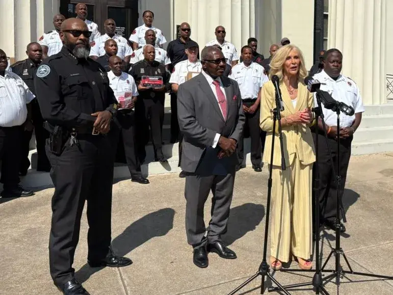 Brittany Denson, Save a Life Day state co-coordinator and organizer for Hinds County, with other volunteers, passes out naxolone and related items including these banana post cards, at St. Luke's United Methodist Church, Thursday, Sept. 25, 2025 in Jackson. Credit: Vickie D. King/Mississippi Today