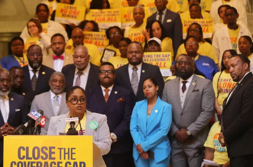 Sonya Williams-Barnes, of the Southern Poverty Law Center, speaks about Medicaid expansion during a Medicaid expansion rally in the rotunda of the Mississippi State Capitol in Jackson, Miss., Wednesday, April 17, 2024. Credit: Eric Shelton/Mississippi Today
