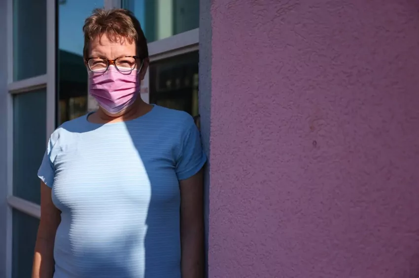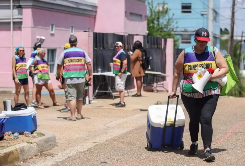 Clinic escort Rose Kasrai leaves the Jackson Women's Health Organization in Jackson, Miss., Wednesday, July 6, 2022. The clinic must stop providing abortions after a judge refused to block the state’s trigger law from taking effect. Credit: Eric Shelton/Mississippi Today