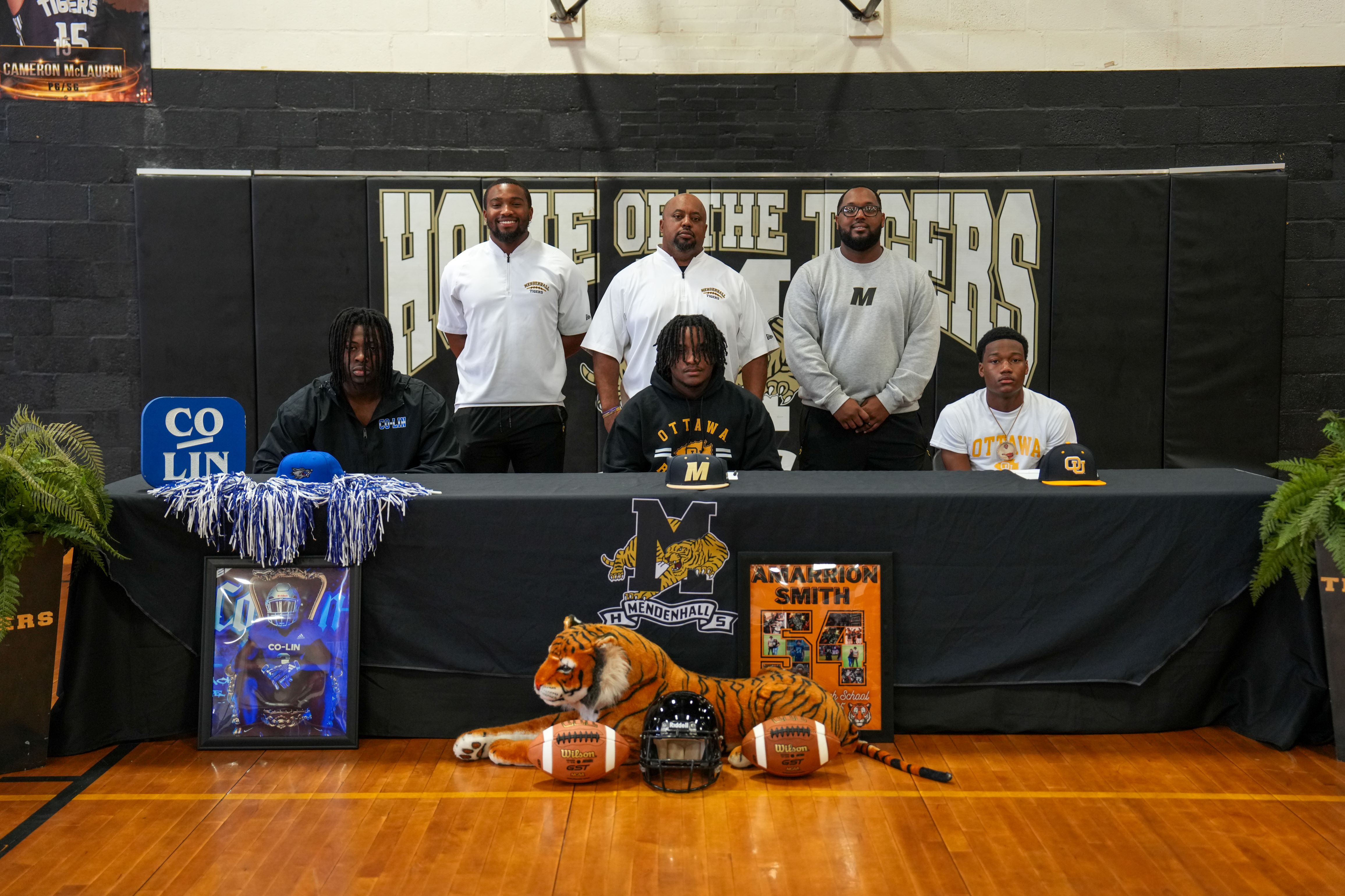 Three Mendenhall Tigers signed scholarships to further their education and football career on National Signing Day. Congratulations to Joshua Davis, Vincent Dixon, and Amarrion Smith