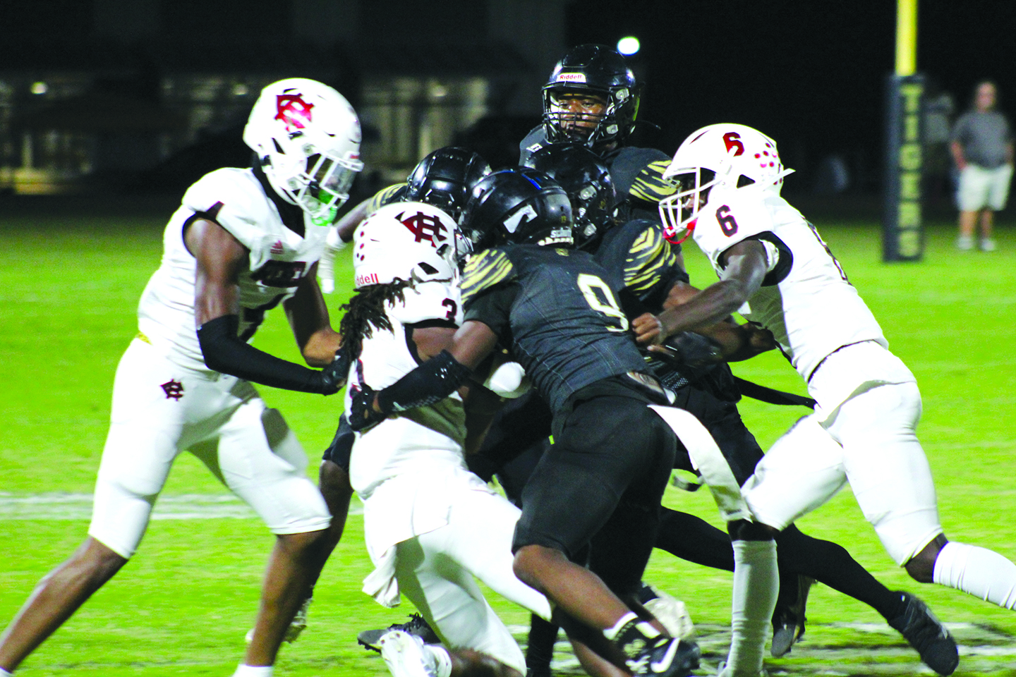 The game was tightly contested in the first half, with both defenses able to make crucial stops. Linebackers Jay Page, Princeton Miller, Kendall Walker and Eddie Weathersby did an excellent job pursuing the football and making stops. The defensive front led by Joshua Davis was great at the point of attack and controlling the line of scrimmage. This led to a scoreless first quarter while both offences tried to gain their footing.