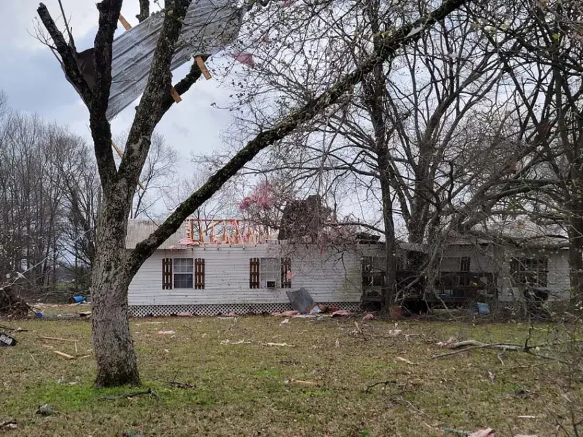 Among the damaged structures was the Leflore County home of Beth and Glen Stevens, located on County Road 166. Beth is the executive director of the Greenwood-Leflore County Chamber of Commerce, and Glen is the principal at Bankston Elementary School.