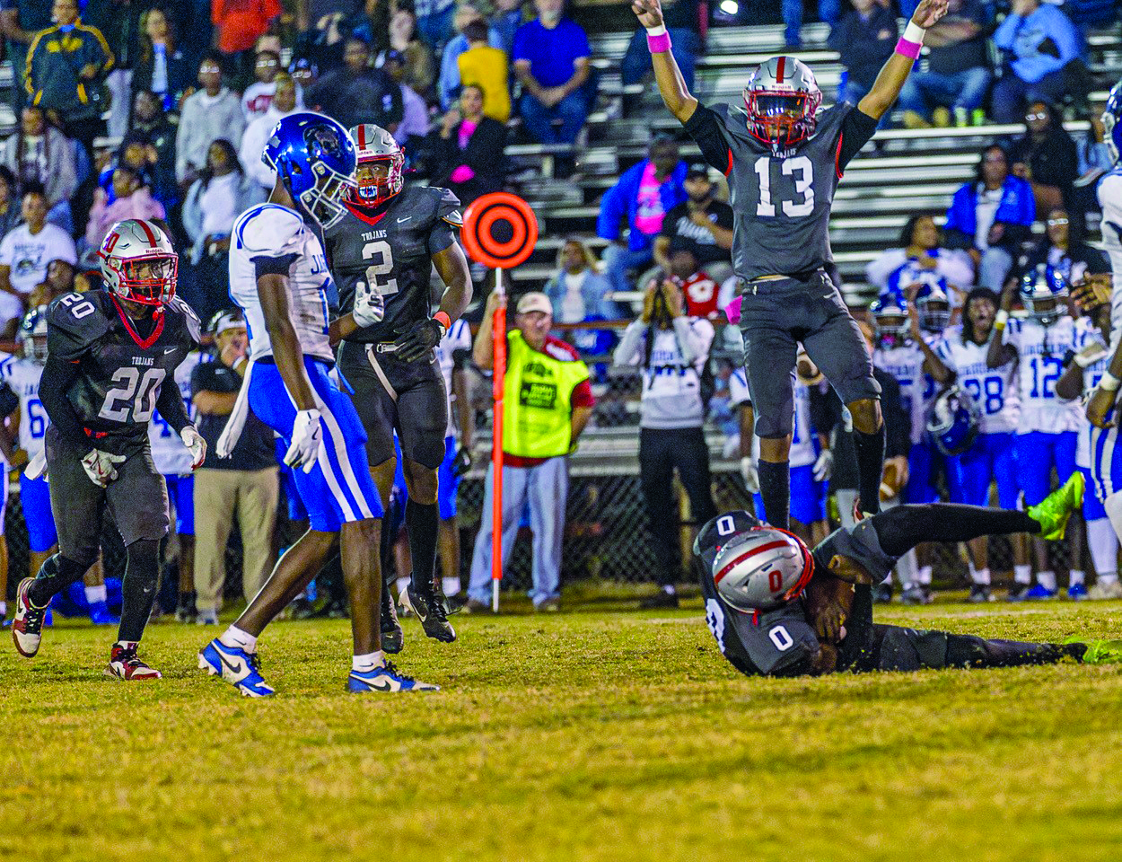 The Trojans jumped out to a fast start with big plays from Christian Hubbard, Jeremiah Cole, Ken Porter, and Kendal Middleton on offense. The defense, led by DeLarrius Hayes, Zykeriean Magee, and Quay Berkhalter, played sound and kept the speedy Jaguar offense in check through the first half.