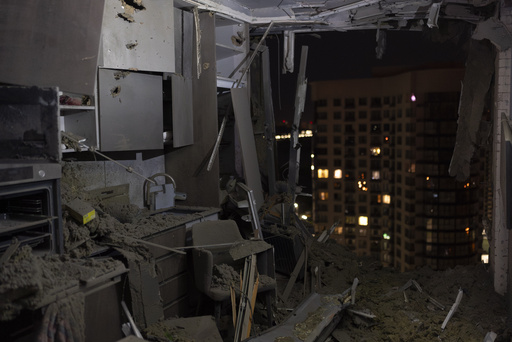 In the aftermath of the nighttime attack on Kyiv, Volodymyr Motus, a 22-year-old resident of the 25-story building, carefully picked his way across the floor of a destroyed apartment, his footsteps crunching shattered glass. The mangled furniture was coated in a thick layer of dust.