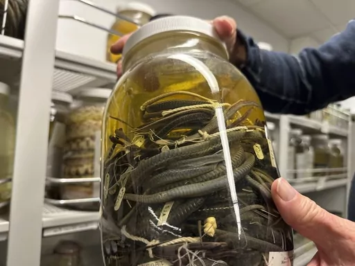 ANN ARBOR, Mich. (AP) — Greg Schneider scans rows upon rows of liquid-filled glass jars containing coiled snake specimens, just a portion of the University of Michigan Museum of Zoology's reptile and amphibian collection believed to be the largest held by any research institution in the U.S. thanks to a recent donation.