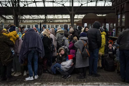 SIRET, Romania (AP) — Sitting with her teenage daughter in a hotel foyer in northern Romania, 38-year-old Viktoriya Smishchkyk breaks down in tears as she recounts her departure from Ukraine.