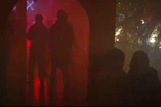 CHANGCHUN, China (AP) — Crouch through the small metal door and walk down the dark tunnel, and even before you step into the abandoned air raid shelter, the air reverberates with pounding techno beats. Young Chinese holding booze and cigarettes shake and sway in a red-lit passageway, below a big screen rolling through quotations from Chairman Mao.