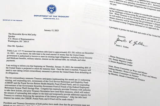 In a letter to House and Senate leaders, Yellen said her actions will buy time until Congress can pass legislation that will either raise the nation's $31.4 trillion borrowing authority or suspend it again for a period of time. But she said it's “critical that Congress act in a timely manner."